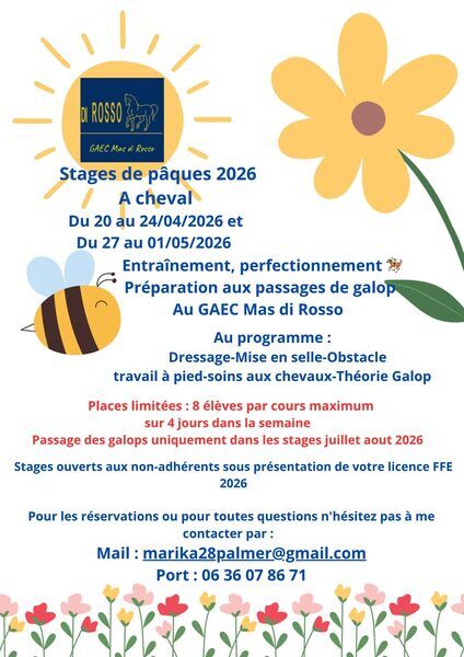 Stages de pâques 2026 A cheval