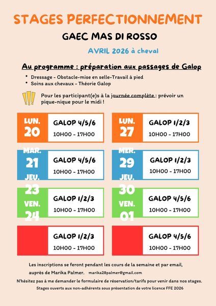 Passage des galops uniquement dans les stage juillet, août 2026